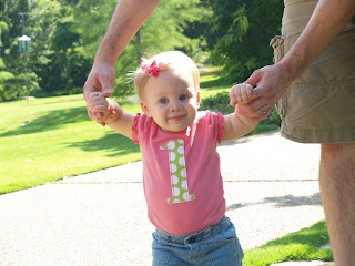 I'm starting to get this walking thing down. Mom and Dad didn't want to forget how old I am so they made me wear a big 1 on my shirt.